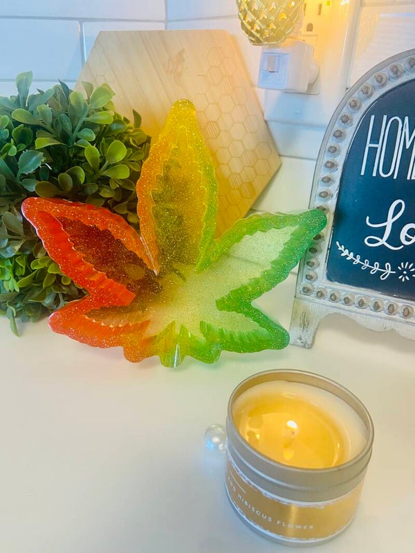 RASTA COLOR MAPLE/WEED LEAF ASHTRAY
