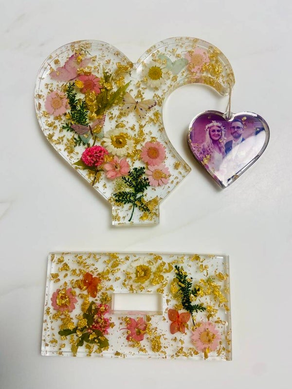 Resin Flower Heart Shape Decor w/ Personalized Picture