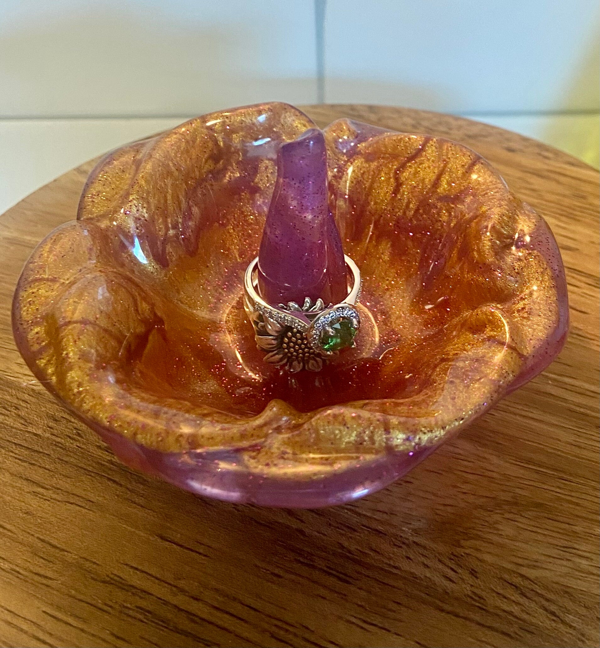 Mixed gold/purple flower design ring holder